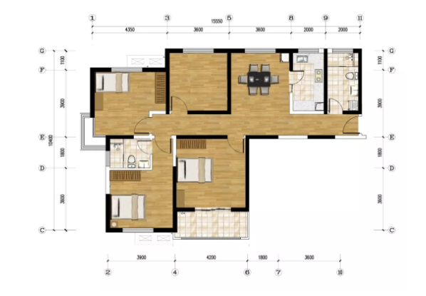 卧室配置:空调和基本家具,包括双人床、床头柜(个别次卧使用书桌)和衣柜等。
