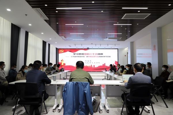 10月25日,微电子学院邀请马克思主义学院叶海涛教授作了题为《学习贯彻党的二十大精神—“人与自然和谐共生”的中国式现代化道路探索与实践》的学习辅导。学院党政领导班子和全体教职工以及学生党员代表参加会议。