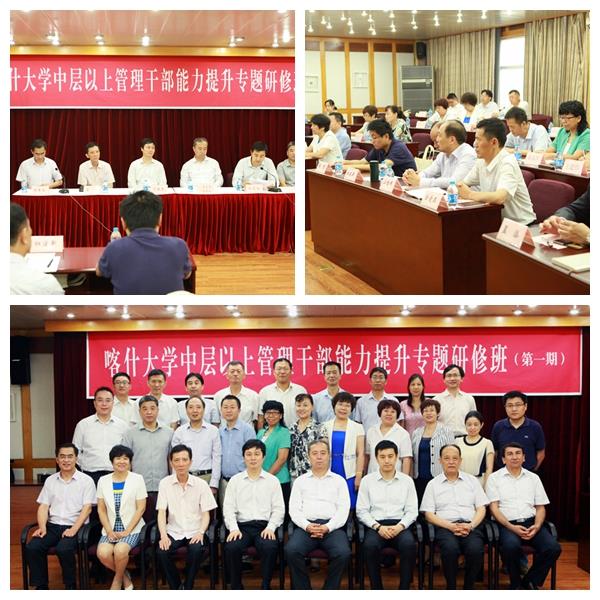 上海市援疆前方指挥部副总指挥杨元飞在会上就上海的援疆工作情况做了简要汇报,对此次喀什大学跨校办理研修班,开创该校异地培训先河所赋予的现实意义做了解读。上海市教委副主任丁晓东则用很亲切、很高兴、很荣幸、很激动、很惶恐,这五个词简要描述自己的心情,并引用抓人才和人心的例子谈及此次喀什大学校领导带队,中层以上干部参加的培训体现出喀什大学在综合性大学建设上所具有的战略思维与前瞻性思考。