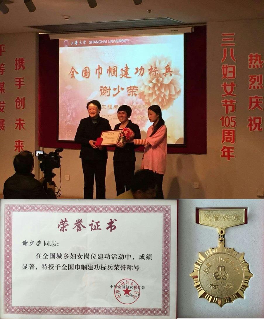 谢少荣教授荣获2014年度全国“巾帼建功”标兵,她在国内率先开展小型飞行机器人自主控制研究,突破了传统机械变距制约旋翼飞行器微小型化的技术瓶颈,并成功应用于多次反恐演习。此外,谢少荣教授针对机器人在颠簸环境中的视觉稳定性,提出基于眼球生理神经回路的仿生视觉系统;针对上海世博会浦江水域安保,研制了基于探测机器人技术的水域安全监测监控系统,属于国际首创。更令人骄傲的是,教授研制的无人艇,首次在中国南海各岛礁巡航测量,维护了国家主权。不仅如此教授针对南极科考需求而研制的低温非电驱动机器人,随中国第30次南极科考“雪龙号”赴南极埃默里冰架科考。谢少荣教授的研究硕果累累,她曾荣获中国航海科技一等奖、上海市技术发明一等奖一次、二等奖两次,上海市巾帼创新提名奖等,并且入选了上海市启明星跟踪计划,被评为上海市优秀学术带头人、上海市三八红旗手标兵、上海市三八红旗手等。