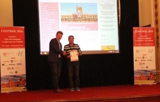9月2日,我院2014级博士研究生张进与其导师彭晨教授合作论文“Stability analysis of networked control systems with denial-of-service attacks”荣获第11届英国控制会议(UKACC International Conference on Control,简称UKACC Control 2016)的最佳学生论文Runner-up Award奖。本届英国控制会议设最佳学生论文Award 1篇,最佳学生论文Runner-up award 1篇。