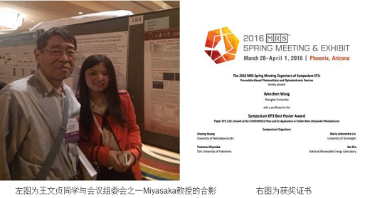 材料学院研究生王文贞获得MRS2016春季会议最佳Poster奖