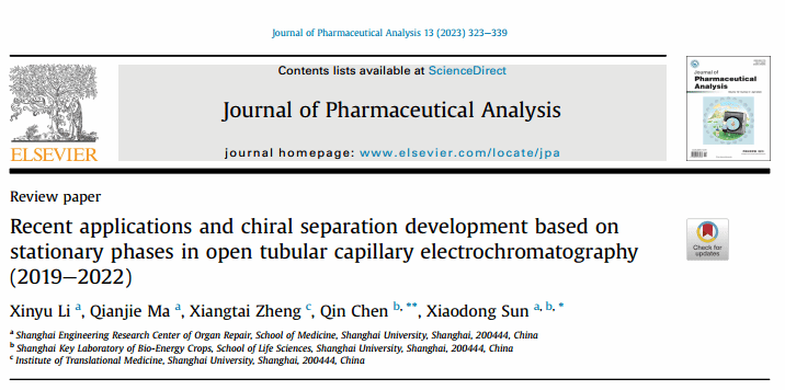 医学院青年教师孙晓东博士在Journal of Pharmaceutical Analysis同期发表两篇文章