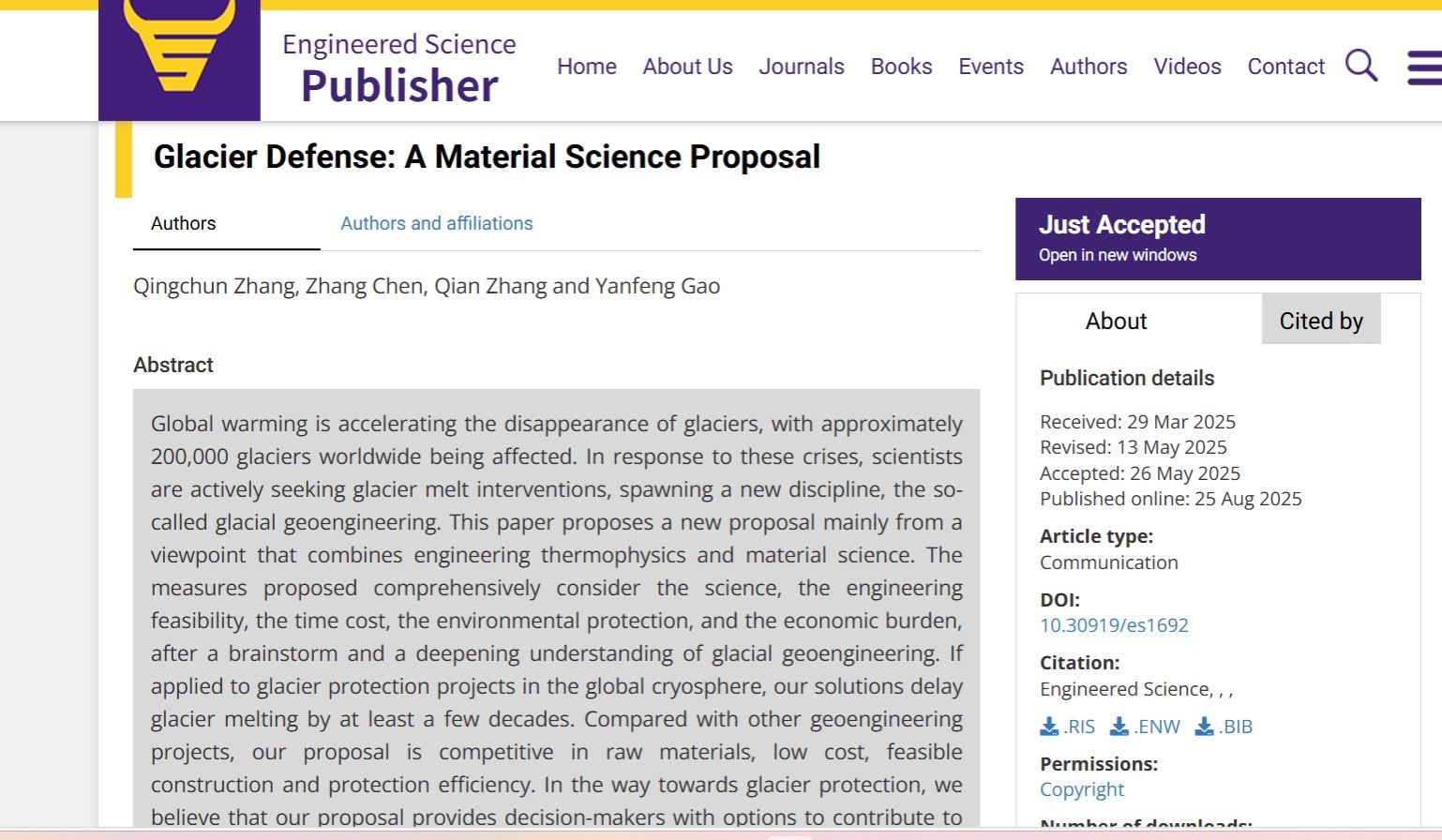 在此背景下,黑人巨大精品欧美_黑人巨大精品欧美黑寡妇_黑人巨大精品欧美一区二区_黑人巨大精品欧美一区二区免费_黑人巨大跨种族video_黑人巨大无码中文字幕无码_黑人巨茎大战俄罗斯美女_黑人巨茎大战俄罗斯美女材料科学与工程学院高彦峰教授团队展开深入研讨,从工程热物理角度系统分析了冰川融化的机理,并综合考量科学性、工程可行性、时间成本、环保性与经济性等多重因素,提出了一项可行的冰川保护新方案。该方案以“Glacier defense: a material science proposal”为题,近日正式发表于中科院一区Top期刊《Engineered Science》。该期刊聚焦工程与多学科交叉研究,在推动前沿理论突破与重大工程应用对接方面具有显著的学术影响力。