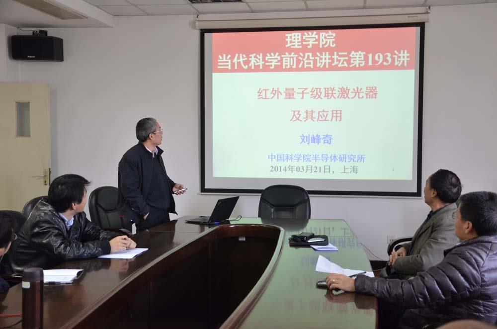2014年3月21日,中科院半导体所刘峰奇研究员应邀访问我校并在F307报告厅为我院师生作了“红外量子级联激光器及其应用”的学术报告,本次报告为我院当代科学前沿讲坛的第193讲。