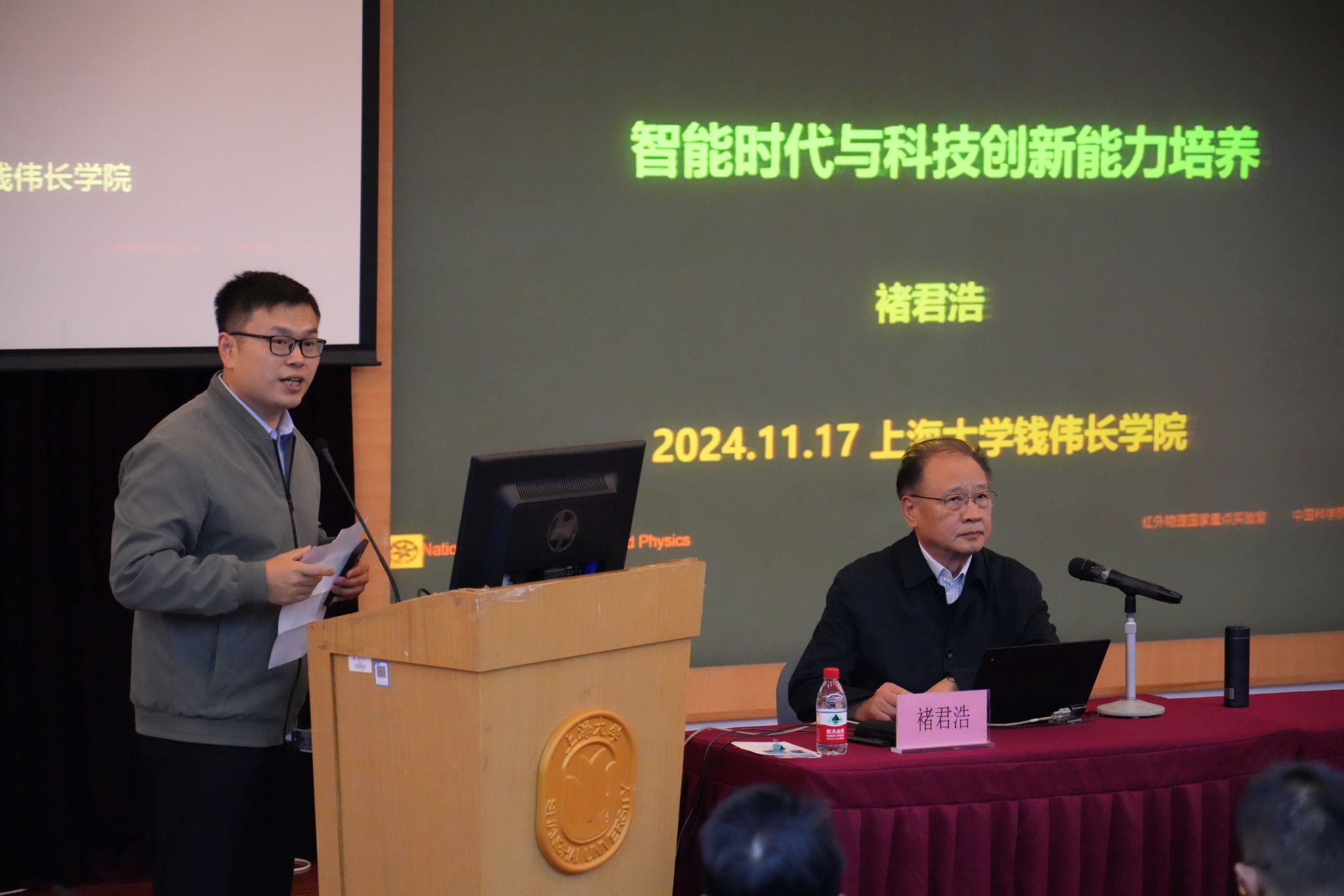 讲座在热烈的掌声中圆满结束。此次报告为师生们提供了一次与顶尖科学家面对面交流的宝贵机会,褚君浩院士的精彩报告让同学们对智能时代的科技创新有了更全面、深入的认识。本次讲座也是上海市“劳模进校园”系列活动的组成部分,是科学教育与劳动教育的双向奔赴,我院将继续在科创教育上深耕厚植,更好地孵化伟长学子的科学精神、创新素养,弘扬科学家精神和劳模精神,激励同学们在“大师引领”的理念启发下,在求知的道路上不断砥砺前行,努力培养自己的科技创新能力,为未来在智能时代的科技浪潮中勇立潮头、贡献力量做好充分准备。(撰稿:徐欣彤)