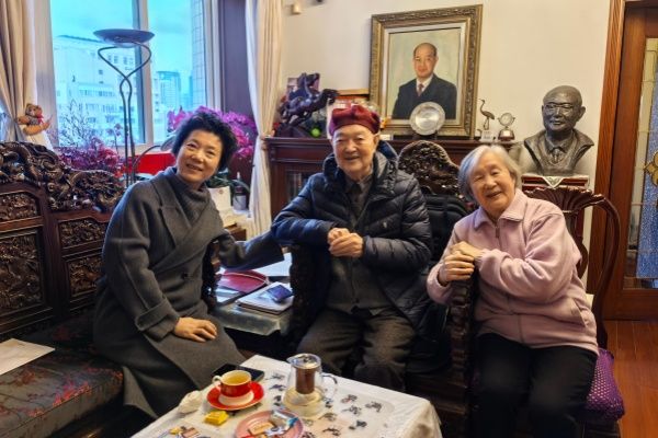 她们先是到了老会员家属施丽霞老师家中。这是她们连续第7年代表民进上大来探望。前几年老会员蒋嘉俊因病故世,孩子在国外工作,会员家属施丽霞老人一直独居。民进上大委员会延续了这份问候,详细询问了她的身体状况和日常生活情况。93岁的老人刚刚上完钢琴课(85岁开始学钢琴),精神矍铄,乐观豁达,对生活和身边的人充满感恩,对国际国内形势也非常关注。每次与施老师的交流,都让人受益匪浅,如沐春风,感受到生命的启迪。她表示非常感谢民进,在先生故世之后,还一直对她表示关心和支持。亲戚朋友的关照,让她感到并不孤单。她说自己是一棵老树,大家是阳光雨露,她还想再看两届世界杯!
