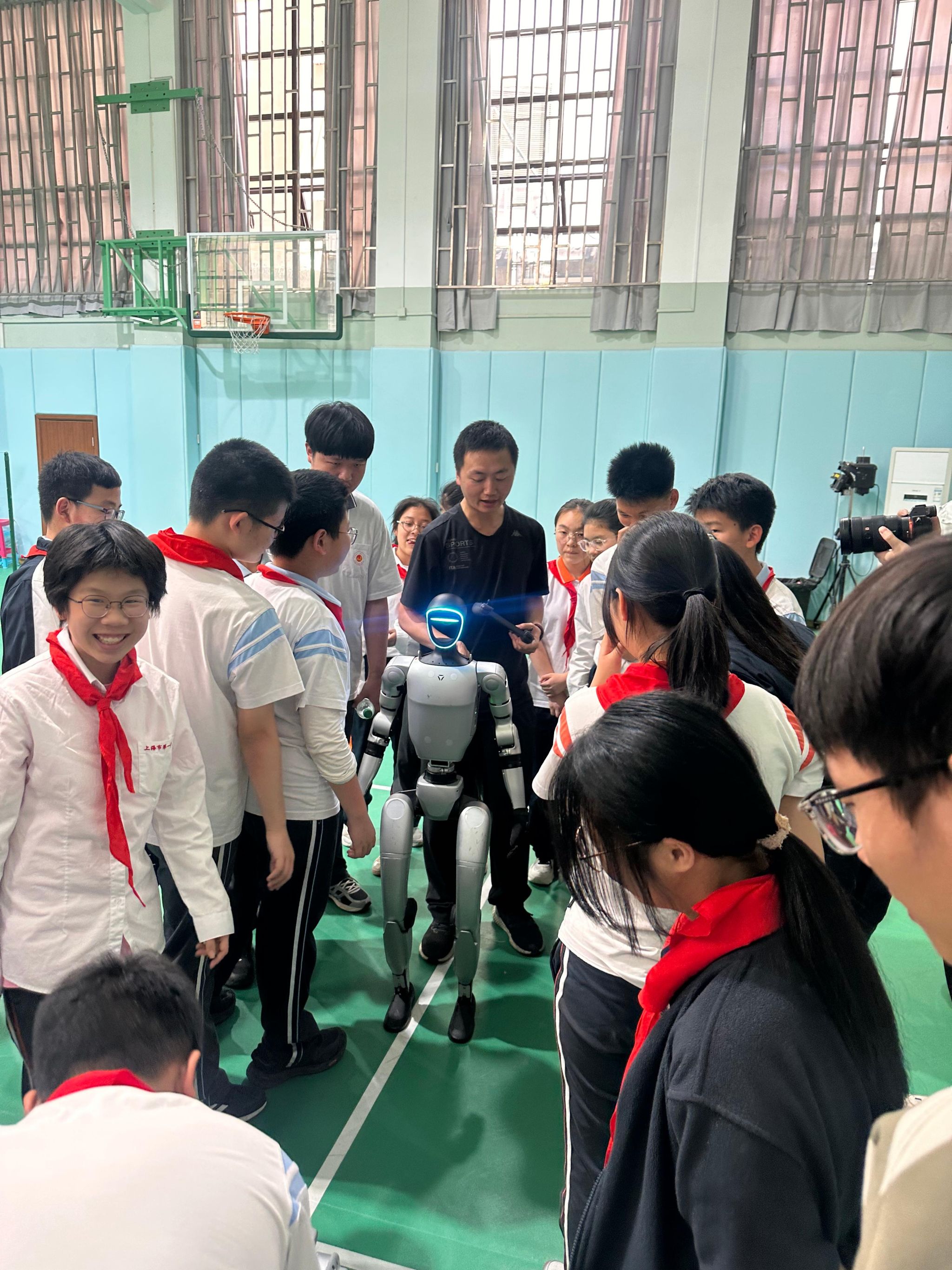 机器狗稳健攀爬楼梯至舞台中央,精准完成动态平衡演示及礼仪交互。这一技术已应用于工业巡检、应急救援等实体场景,充分展示了科技的实用性和价值。人形机器人的登场将整个科技节开幕式的气氛推向了高潮。它的仿生步态控制系统支持稳健完成单脚平衡、卧姿复位等复合指令,展现出了先进的科技水平。人形机器人不仅仅是一个机械装置,它代表着科技发展的前沿方向。在不久的将来,其认知计算与情感交互技术将推动人机共融,为我们的生活注入高效、安全与温情并存的科技力量。这让师生们对科技的未来充满了期待,也让大家深刻认识到科技的发展将给我们的生活带来巨大的改变。