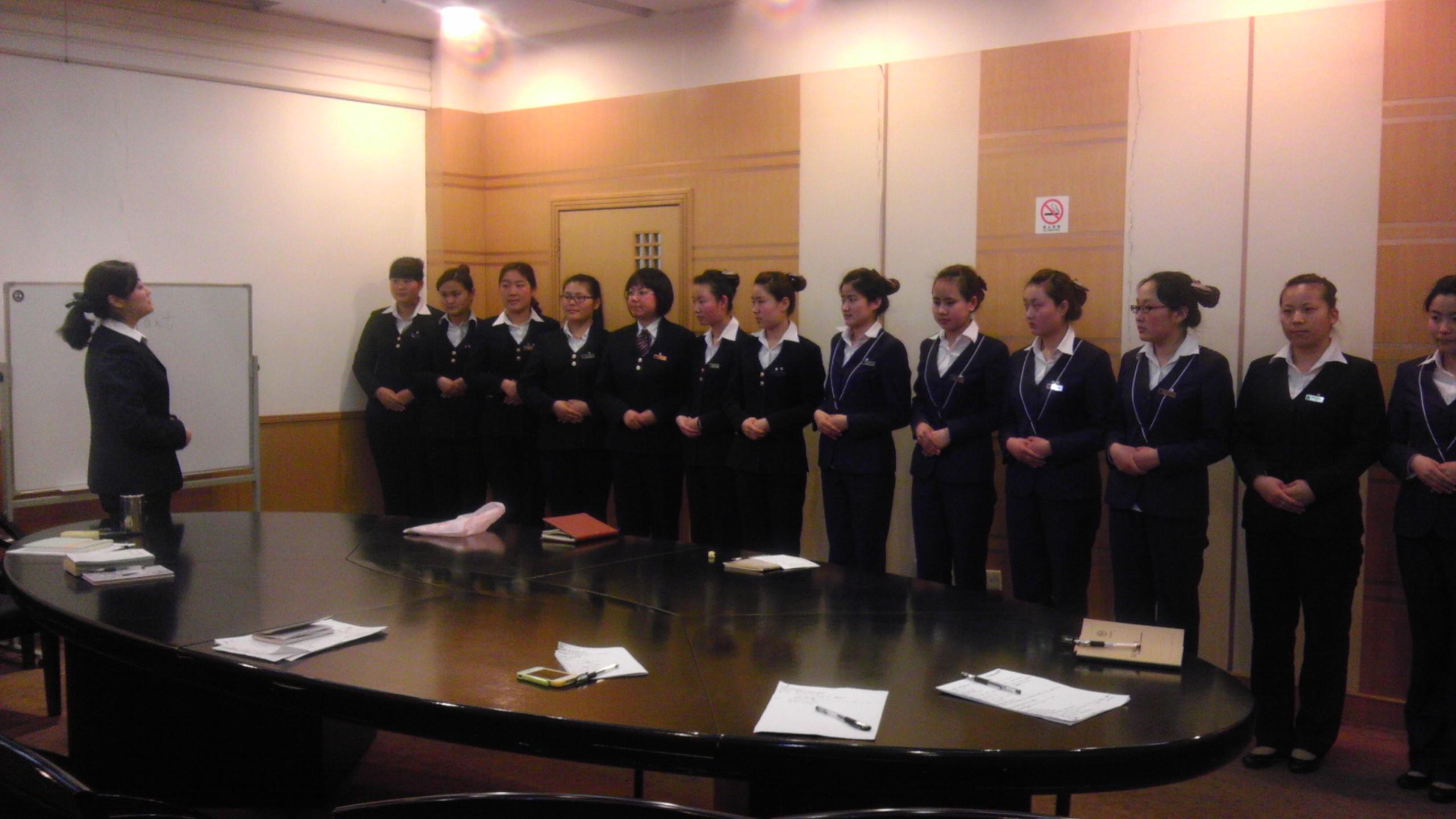 业务培训主要围绕三方面内容展开:基础礼仪、业务操作及服务英语口语。潘老师先从理论知识入手,结合实际工作中的案例,深入浅出地阐明了各个岗位的服务要领;再以情景模拟的形式,对需掌握的理论要点加以训练和巩固;每一次小课程结束,还以座谈的方式,让每一位员工以所学、所练的内容为参照,反馈在日常工作中的落实情况,及时查漏补缺,及时提醒并更正。